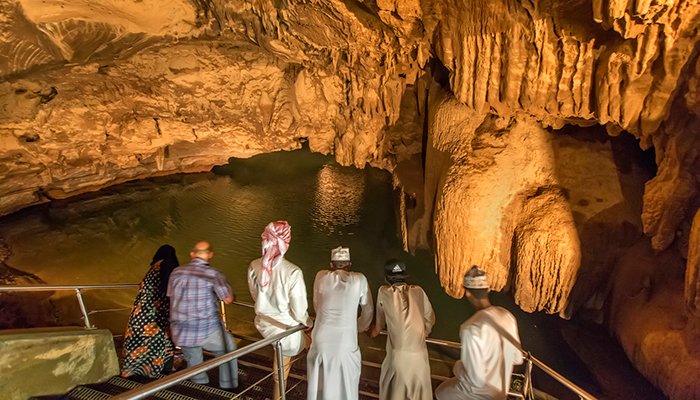 The cave has two openings—Al Hoota, where water flows in from the mountain, and Al Falaah, where the water exits after passing through underground passages.