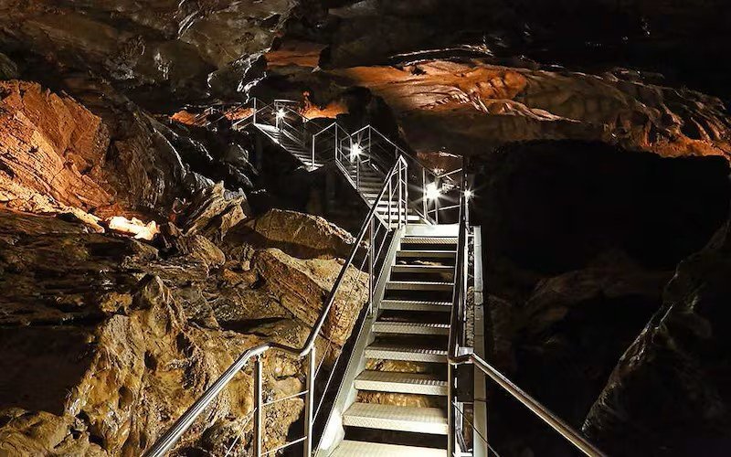 The cave tour lasts approximately one hour, covering a 4 km trek. The cave is spacious and does not require crawling or bending. However, due to large rocks along the path, some sections may require climbing, jumping, or descending.
